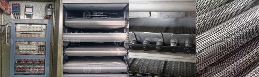 多段式带式干燥机可实现热风循环、排湿、冷却一体化,通过分温区控制,避免物料表面硬化或内部湿度过高,确保干燥后颗粒蓬松、复水性好。