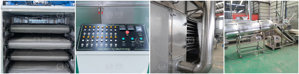 挤压成型后的产品随后进入烤箱进行高温烘烤,进一步实现脆化和熟化,达到非油炸膨化休闲食品的口感标准。